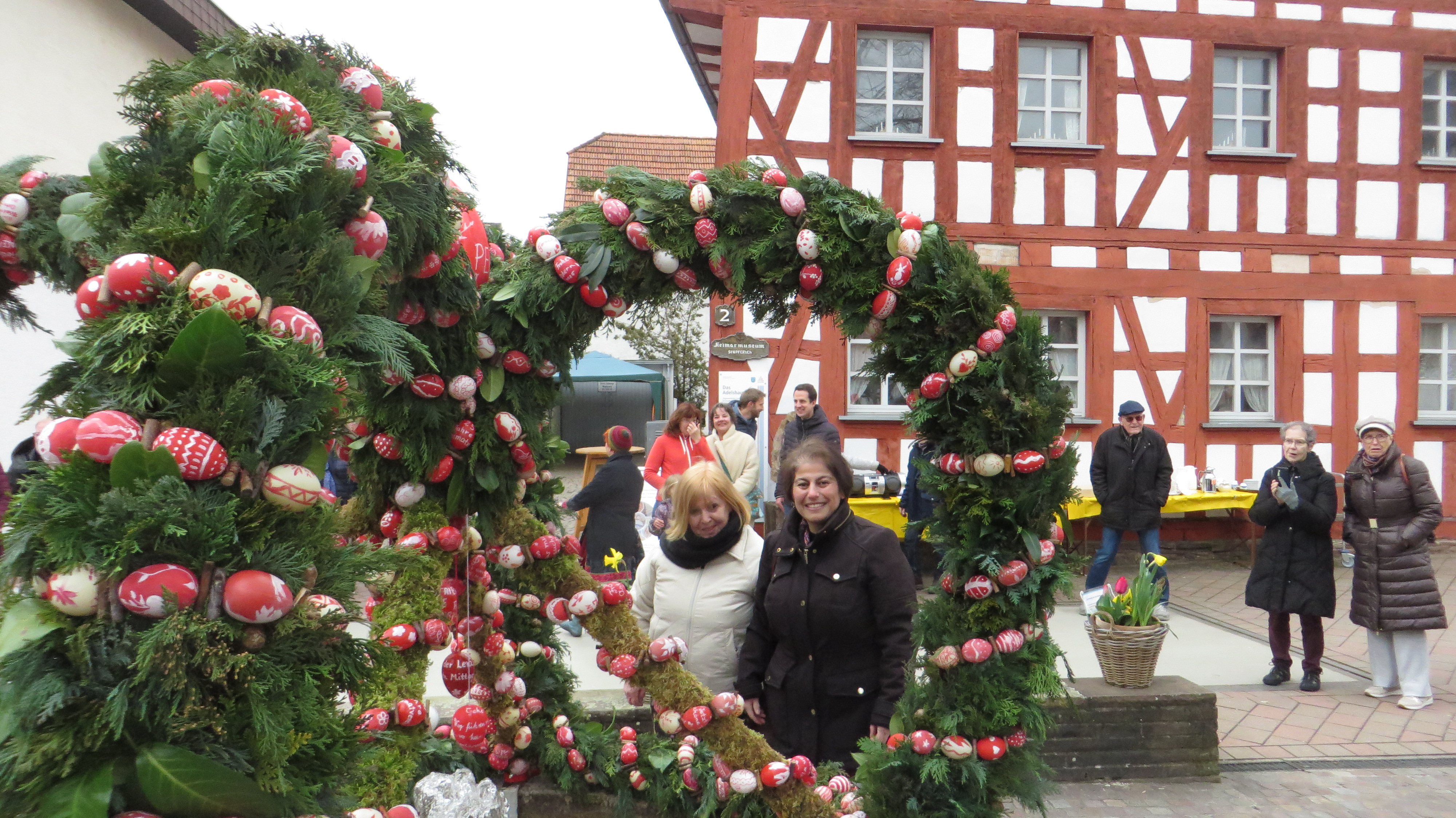Auch 2026 waren Vertreter der Europäischen Brunnengesellschaft zur Enthüllung der Brunnenkrone 2026 in Stupferich. Der 1. Vorsitzender des Heimatvereins Heinz Häge begrüßte die zahlreich erschienen Besucher und unterstrich die Wichtigkeit des Wassers. Gemeinsam mit Frau Dr. Rahsan Dogan enthüllte Frau Veronika Brunner-Häge, 2. Vorsitzende des Heimatvereins, die Brunnenkrone unter Beifall vieler Besucher/innen. Mit Mineralwasser, Kaffee und leckerem Ostergebäck wurde der frostige Vormittag abgerundet. Die geschmückte Brunnenkrone kann bis Ende April angeschaut werden. Und man kann die Eier mit Lied- o. Gedichttexten, sowie religiösen Motiven in Ruhe auf sich wirken lassen.